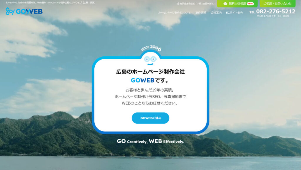 株式会社GOWEBは、広島で19年の歴史を持つホームページ制作会社です。これまで500社以上、1,000件を超える豊富な実績に裏打ちされた「成果重視」の提案力と、確かな技術力が最大の強みです。