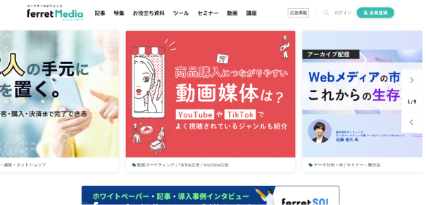 ferretは「マーケターのよりどころ」をコンセプトに掲げる日本最大級のWebマーケティングメディアです。Webマーケティング支援事業を展開する同社の強みを活かし、SEO、市場調査、BtoB、サイト制作、業務効率化など幅広いカテゴリーの情報を提供しています。