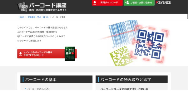 一次元バーコードと二次元コード(QRコード)の2つにカテゴリを絞り、バーコードの基本原理から詳しい構成、使用例まで専門知識を網羅的にまとめています。シンプルな構成ながら非常に専門性の高いコンテンツを提供している点が特徴です。