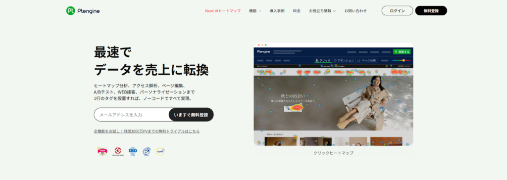ヒートマップ解析機能も搭載されており、ユーザーがランディングページのどこで離脱しているかを視覚的に把握し、改善ポイントを特定できるでしょう。