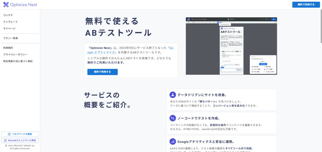 導入リスクがゼロであるため、予算がない場合でも、ABテストが体験でき、基本的な機能を試すことができます。