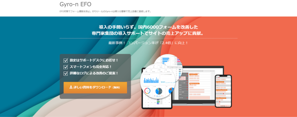 Gyro-n EFOは、導入実績6,000以上を誇るEFO(エントリーフォーム最適化)に特化したツールです。