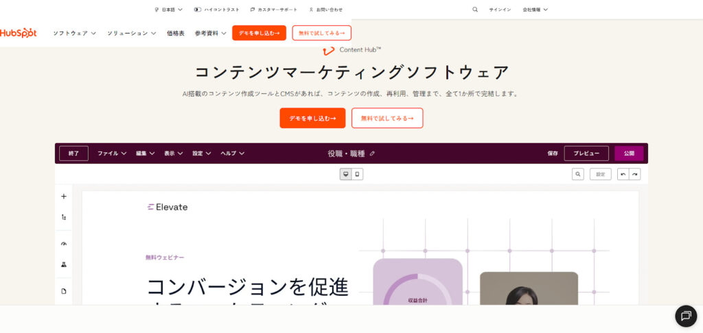 | 公式サイトURL | https://www.hubspot.jp/products/content |