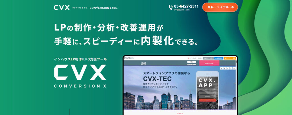 CVXは、ランディングページ最適化を目的にしたランディングページ作成ツールで、インハウスでのランディングページ作成・運用に特化しています。