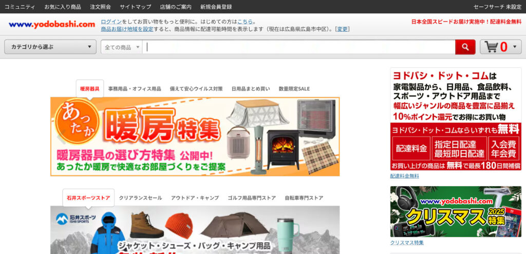ヨドバシカメラのECサイトは、国内売上ランキング2位の実績を支える使いやすさが特徴です。カテゴリ分類が細かく整理されており、目的の商品を素早く見つけられます。商品一覧では、価格や獲得ポイントだけでなく「在庫状況」「配送予定日」「レビュー評価」が一目で確認できる設計です。