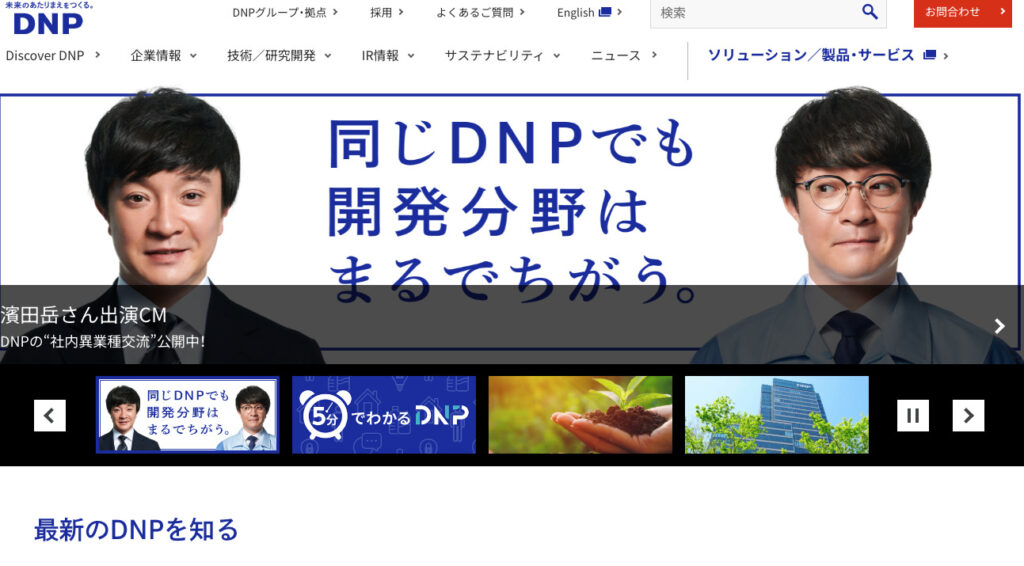 大日本印刷は印刷分野からマーケティングのプロモーション、医療や健康分野までさまざまな事業を展開している会社です。上記で紹介しているランキングのなかでも堂々の1位を獲得していて、総合的にユーザビリティが高いWebサイトと評価されています。
