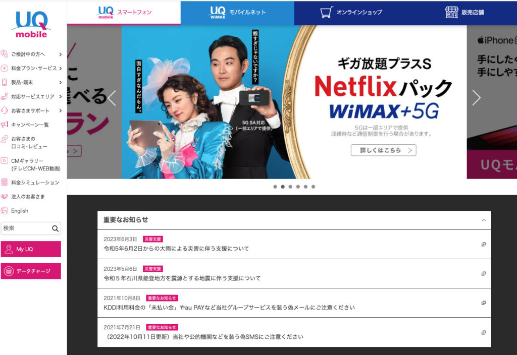 UQコミュニケーションズはKDDIグループの電気通信会社です。「UQ mobile」や「UQ WiMAX」などのサービスを提供しています。
