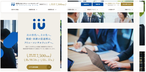 ファーストビューの最上部に「7,500件超」という圧倒的な相談実績を大きく配置し、一瞬で権威性と安心感を確立しています。