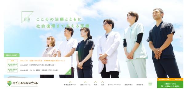 専門用語を一切使わず、患者やそのご家族に優しく語りかけるようなトーンで統一されており、病院に対する緊張感をファーストビューで和らげることに成功している優れたデザインです。
