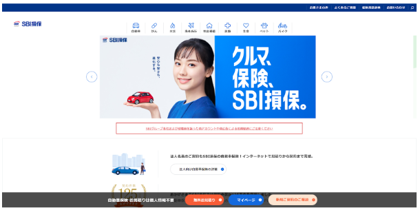 「クルマ、保険、SBI損保。」という極めてシンプルで力強いキャッチコピーと、親しみやすい人物の笑顔を大きく配置し、保険という堅い商材に対する心理的なハードルを大きく下げています。