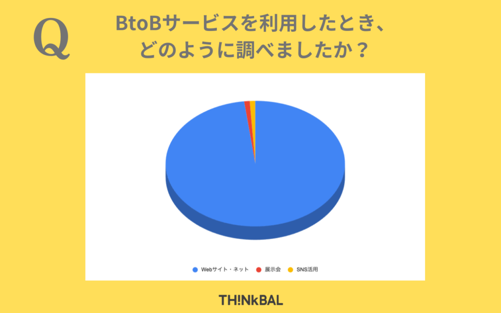 Web制作会社である株式会社THINkBALは、BtoB向けサービス利用時の調べ方や比較方法についてBtoB企業に勤める60名を対象に、調査を実施しました。