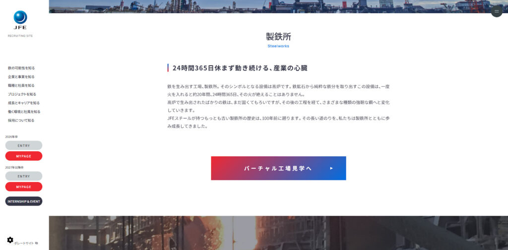 日亜鋼業株式会社の事例では、工場のリアリティある映像をダイナミックに使用し、100年以上の歴史と現代的な技術の融合を視覚的に伝えています。