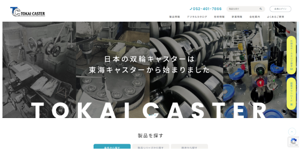 また、東海キャスター株式会社様のように、耐荷重や取付高などの細かな数値で絞り込みができ、さらに図面やCADデータを即座にダウンロードできる構成は、設計業務の効率を大幅に高めます。