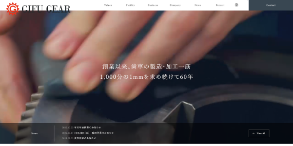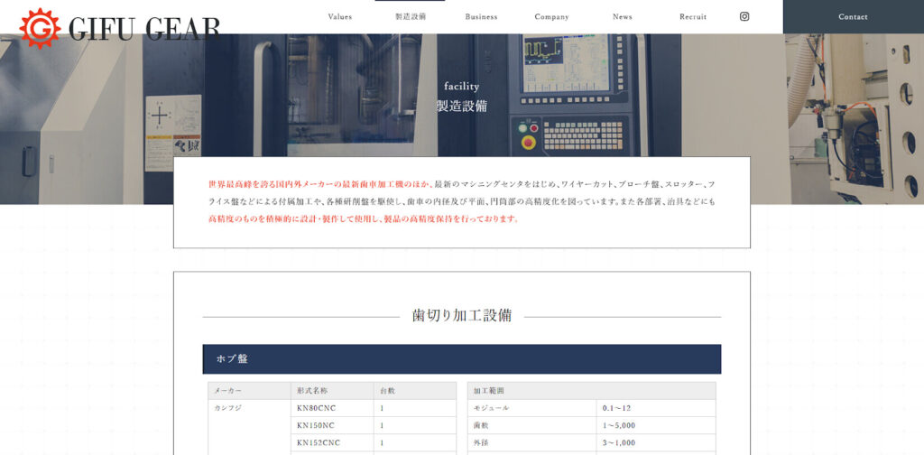 また、岐阜ギヤー工業株式会社様のように社員の笑顔やチームワークが伝わる写真を多用することで、現場の風通しの良さを伝えています。