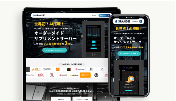オーダーメイドサプリメントサーバー「GRANDE」のサービスサイトリニューアルでは、プロダクトの魅力を最大限に引き出すサイト設計とコンテンツ制作を実施しました。