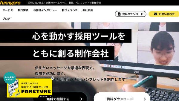 合同会社ファニプロは、採用サイト・採用動画・採用パンフレット制作を得意とする制作会社で、2023年・2025年にBtoB広告賞を受賞した実績を持ちます。求める人物像の設定や会社の強みの整理など上流工程から対応し、採用ブランディングのノウハウをもとに本質的な採用課題の解決につながるツール制作が強みです。