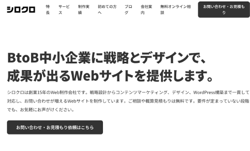 株式会社シロクロは、東京都豊島区を拠点とする、BtoB中小企業向けのWebブランディングとコンテンツマーケティングを得意とする制作会社です。